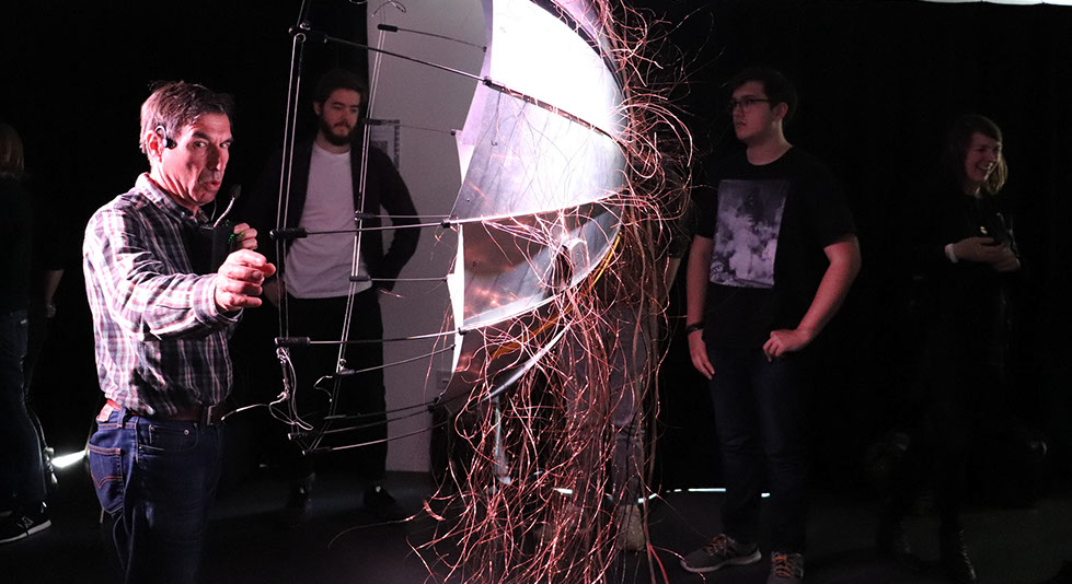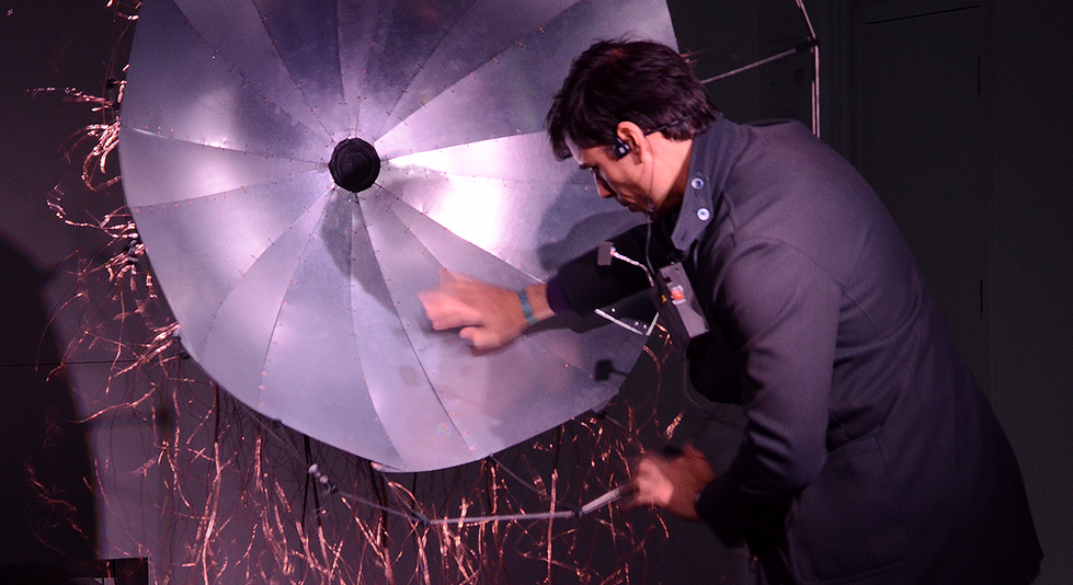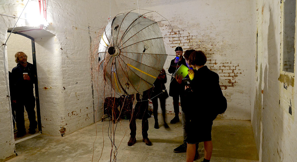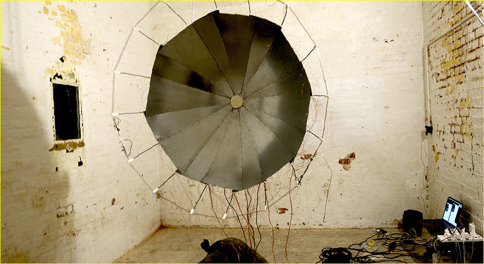 The parabola itself is both an instrument that can be played (percussion, strings) and a speaker that projects the audiences’ combined voices and breath.
