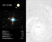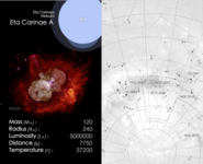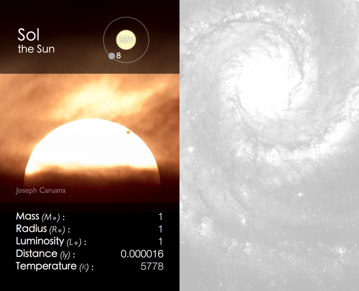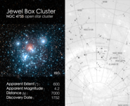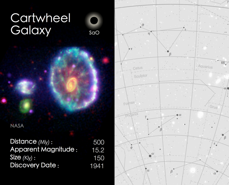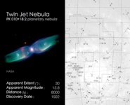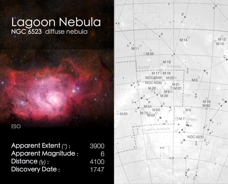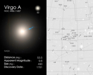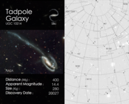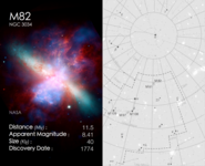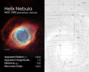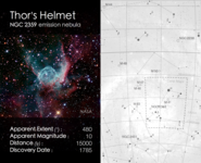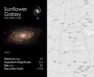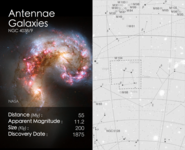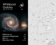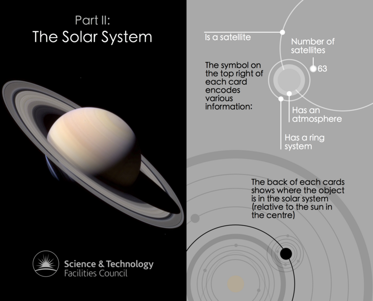 Cosmic Cards is an astronomy themed card game designed to engage primary school aged children (ages: 5-11) with astronomy. The game consists of 5 decks with each deck of cards following one particular theme (e.g. the solar system) and containing between 20 and 25 cards (depending on the theme). The image below shows an example card, with the front on the left and back on the right. In this case the back of the card shows a finding chart for the particular object.